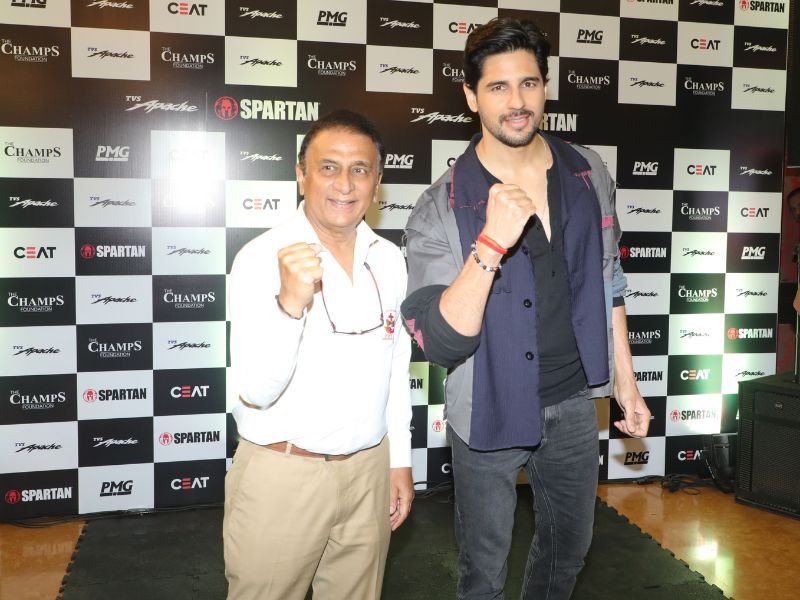 Siddharth Malhotra & Sunil Gavaskar At The Launch Of TVS Apache Spartan