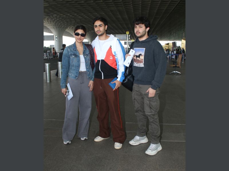 Alizeh Agnihotri, Arhaan Khan, Nirvaan Khan, Alvira Khan Agnihotri, Deanne Panday, Atul Agnihotri, Salma Khan, Helen Khan Spotted At Mumbai Airport
